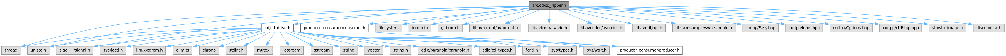 #include <thread>#include <filesystem>#include <iomanip>#include <unistd.h>#include <glibmm.h>#include <libavformat/avformat.h>#include <libavformat/avio.h>#include <libavcodec/avcodec.h>#include <libavutil/opt.h>#include <libswresample/swresample.h>#include <sigc++/signal.h>#include <curlpp/Easy.hpp>#include <curlpp/Infos.hpp>#include <curlpp/Options.hpp>#include <curlpp/cURLpp.hpp>#include <stb/stb_image.h>#include <discdb/disc.h>#include "cd/cd_drive.h"#include "producer_consumer/consumer.h"
